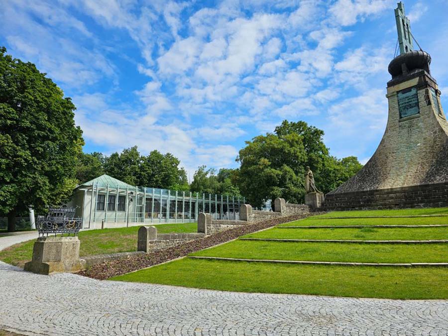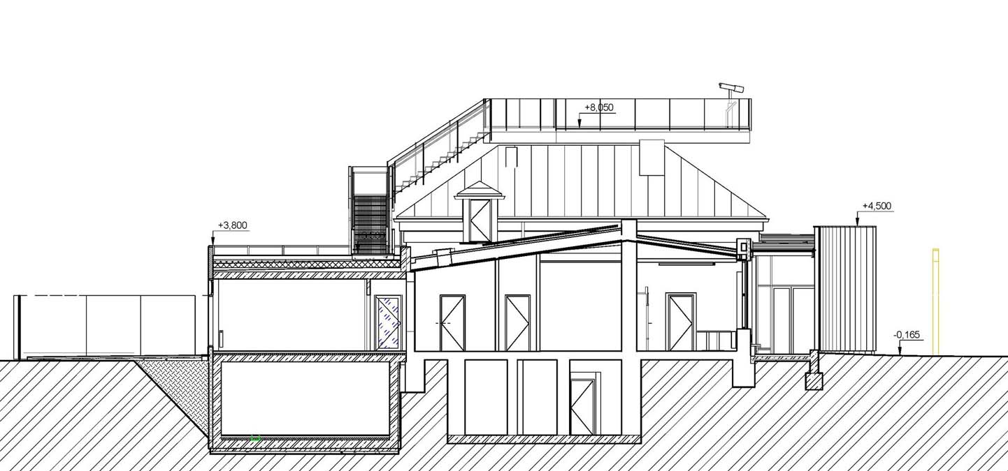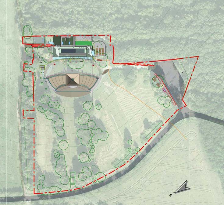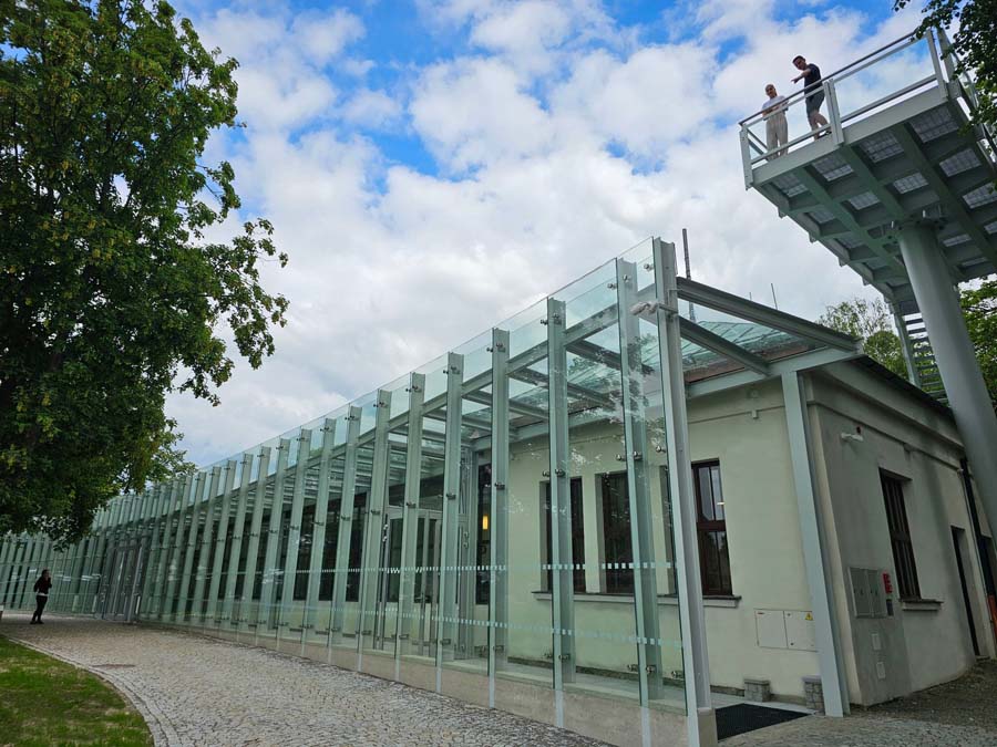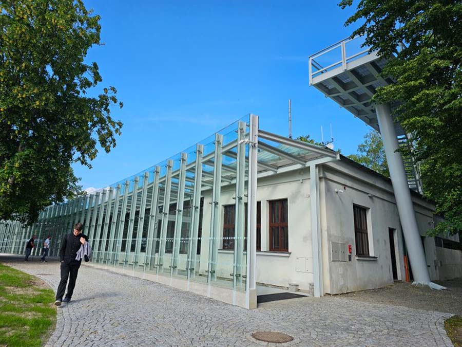 The main idea of the project was to commemorate the first Peace memorial in Europe, which was built out of piety for all fallen soldiers, regardless of nationality or religion. Our primary task was to unite historical and contemporary architecture in a historical and landscape context. The Cairn of Peace, designed in 1907 by architect Josef Fanta, is on the Central List of Cultural Monuments and is also located in the landscape conservation zone of the Austerlitz Battlefield. The principal aim was to sensitively connect the existing museum pavilion with the new infrastructure, i.e. with the museum's facilities – the curators' rooms and offices, depositories and visitors' cafe. The all-glass vestibule wall, that forms an arch in which the Cairn of Peace Memorial is mirrored, seemed ideal. We added two eight-metre high observation platforms – newly designed lookout towers, which Fanta's project originally envisaged, and from which it is possible to oversee the entire Austerlitz Battlefield. At present, the entire surroundings of the Cairn of Peace Memorial have been reconstructed with an oval pattern of paths as well as a new stone paving of the piazzetta in front of the Chapel. The whole area has been illuminated with pylon luminaires. We have also managed to restore the original beds of “Cotoneaster Dammeri” shrubs on the slopes of the chapel, which bear their fruits in the colour of a drop of blood on the anniversary of the battle.